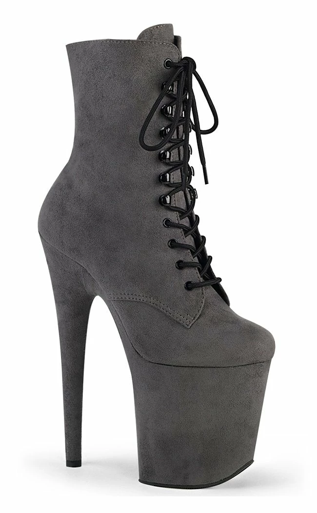 8″ (200mm) Heel, 4″ (100mm) Platform Lace-Up Front Ankle Boot Featuring Fully Wrapped Platform Bottom, Inside Zip Closure