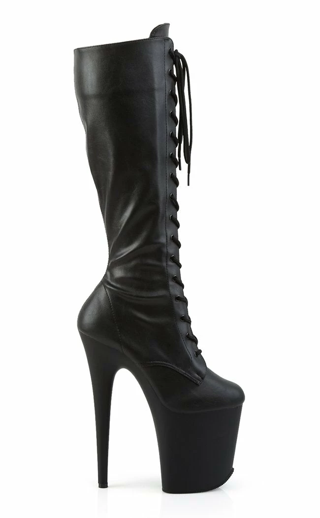 8″ Heel, 4″ PF Lace-Up Stretch Knee Boot, Side Zip