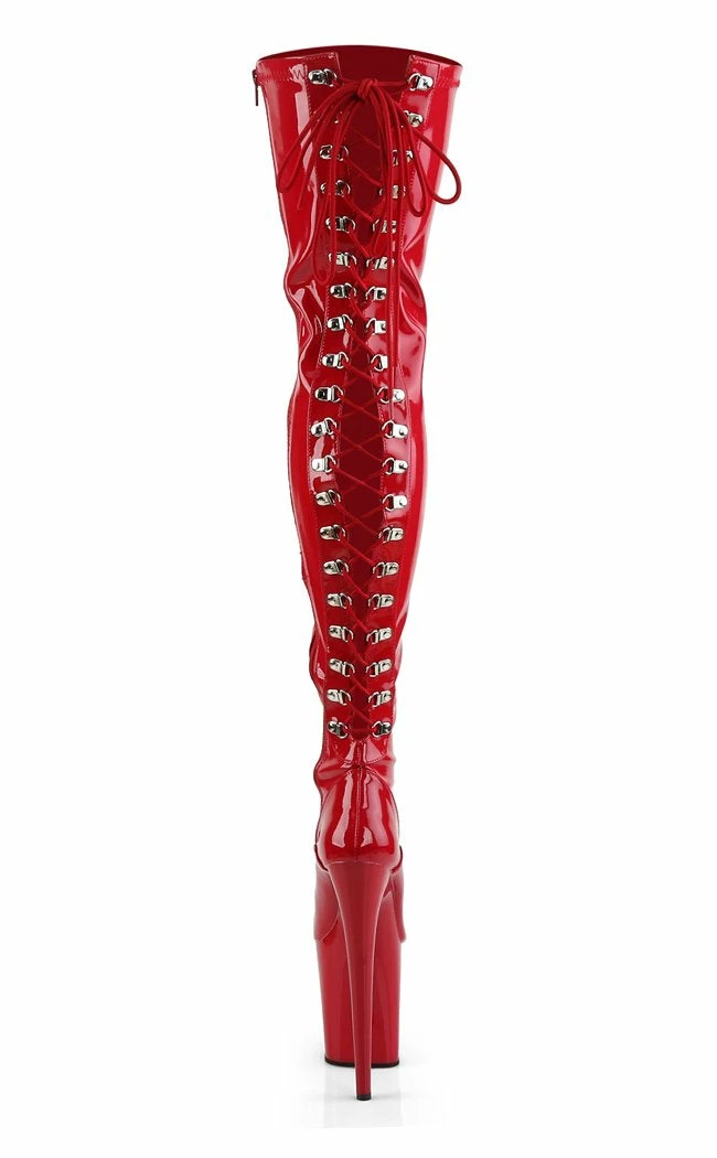 8″ Heel, 4″ PF Lace-Up Back Stretch Thigh Boot, Side Zip