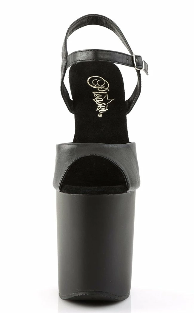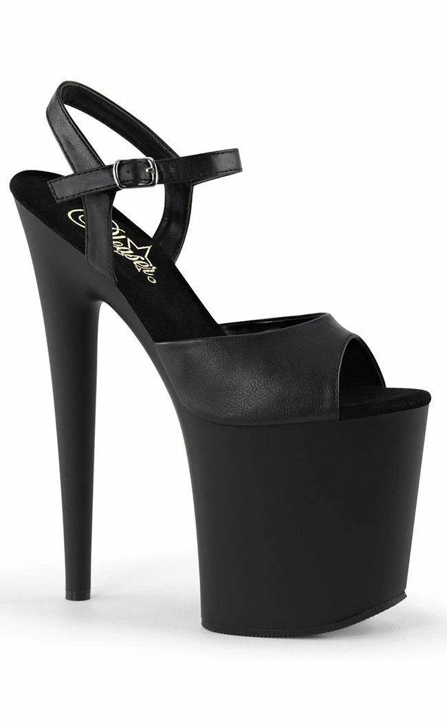 Black vegan leatherΒ pole-dancing shoesΒ with a sky-high 8-inch stiletto heel and 4-inch platform.