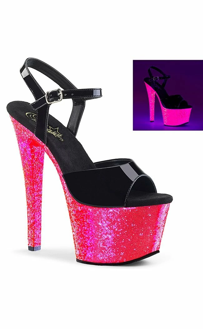 7″ (178mm) Heel, 2 3/4″ (70mm) Platform Featuring Blacklight Reactive Glitters on the Entire Platform Bottom
