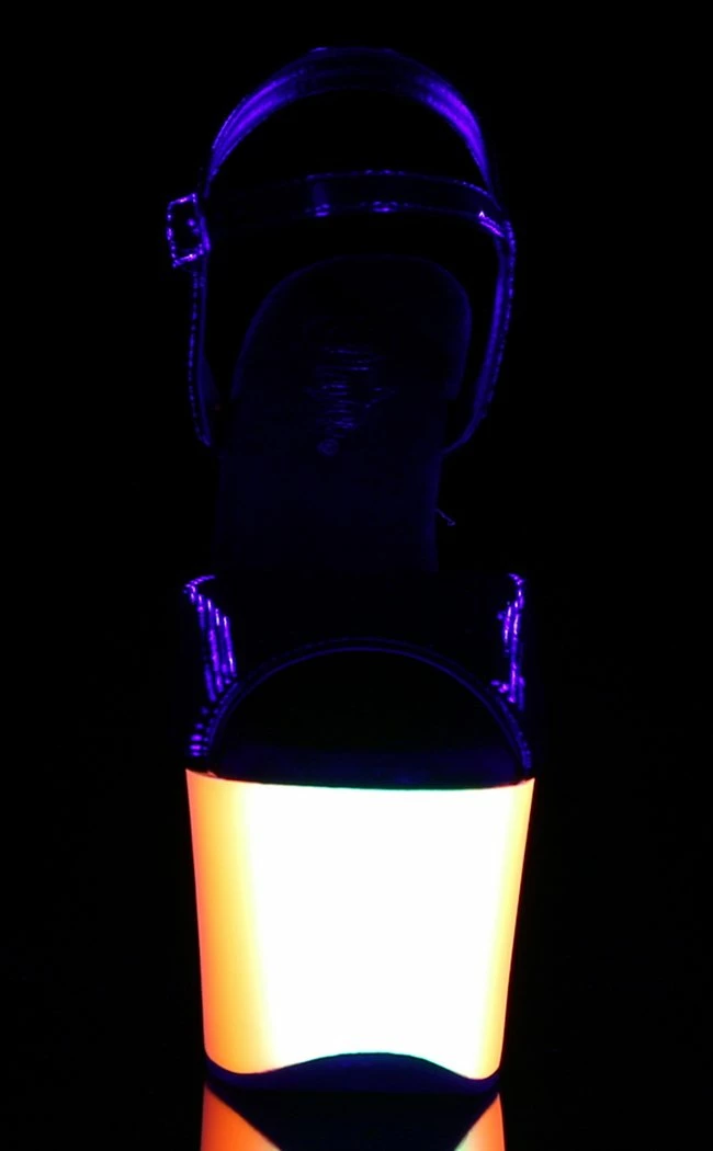 7″ Heel, 2 3/4″ PF Ankle Strap Sandal, Neon UV Reactive