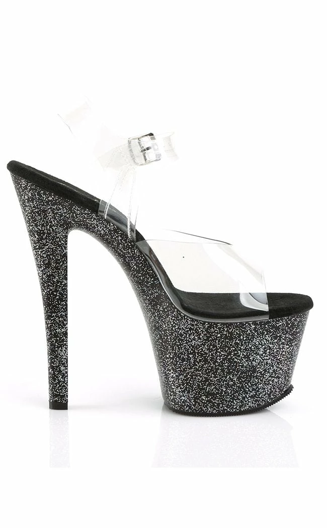 7″ Heel, 2 3/4″ PF Ankle Strap Sandal w/Mini Glitters