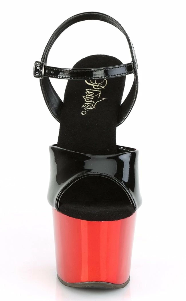 7″ Heel, 2 3/4″ Chrome Plated PF Ankle Strap Sandal