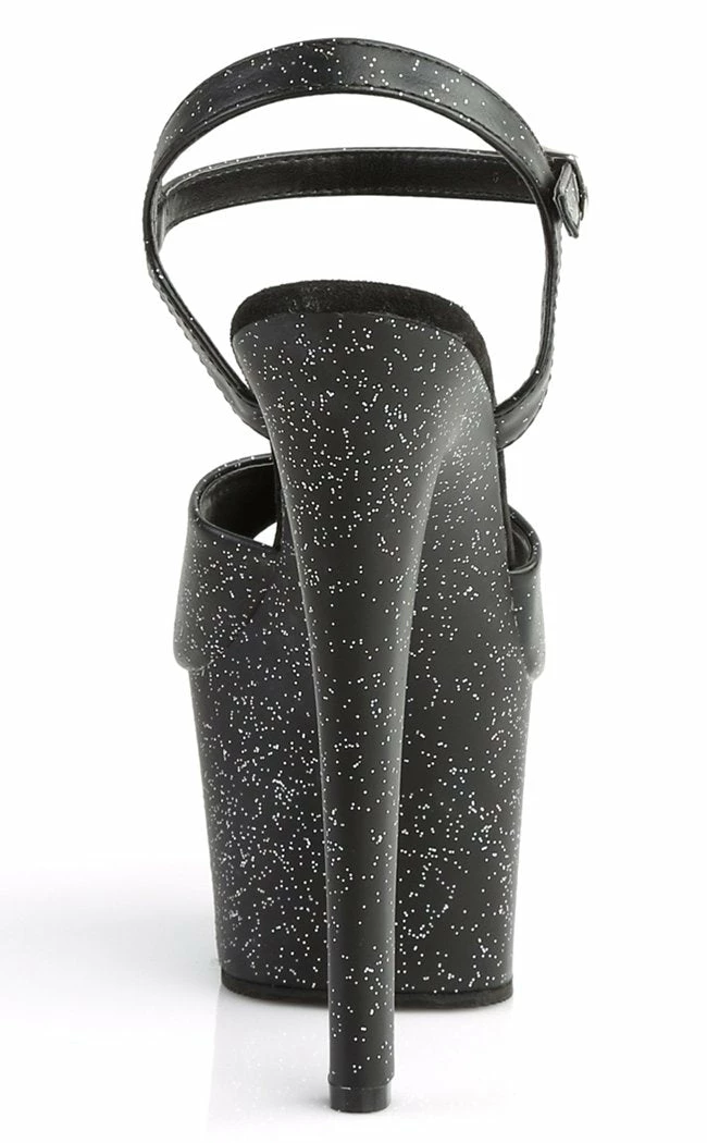 7″ (17.8cm) Heel, 2 3/4″ (7cm) Platform Ankle Strap Sandal Featuring Mini Iridescent Glitter on the Entire Upper & Platform