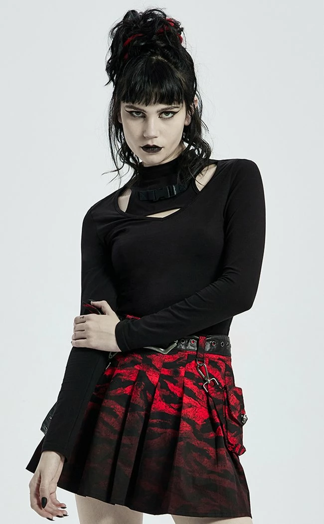 Hit the ground running with the Amara Cutout Top.Β This cyber-chic top features sexy cutouts at the neck, decked out with a buckle decal for a not-so-basic wardrobe staple that’ll instantly lever up any outfit.