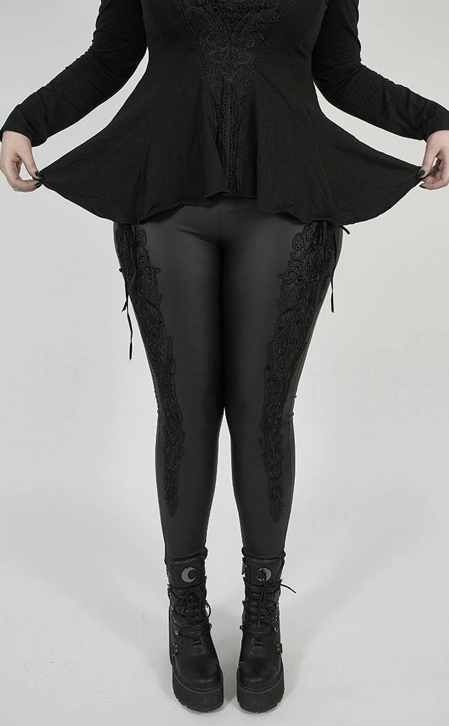 These gorgeous leggings are a faux leather look marvel! There’s heaps of stretch so they cling to your figured, the lacing and decals down the sides adding a touch of elegance.