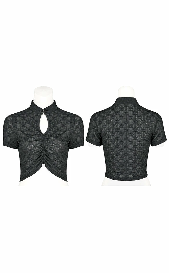 Look cute and collected in the BernadetteΒ Keyhole Top! Soft, stretch fabric forms a Gheonsam style collar, securing with a cloud buckle over a keyhole cutout. Short sleeves and a gathered waistline create a flattering silhouette that pairs well with anything from flowing maxi skirts to sexy booty shorts.