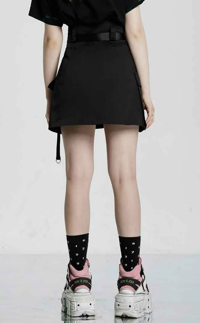 Be ready for anything with this tactic af skirt!Β All in a unique grey, hardy weave this baby sits tightly at the waist and cinches with a belt to flatter the figure.Β Faux side pockets and a chunky, black front zip add to the cargo aesthetic to get you lookin’ ready to take on the world.