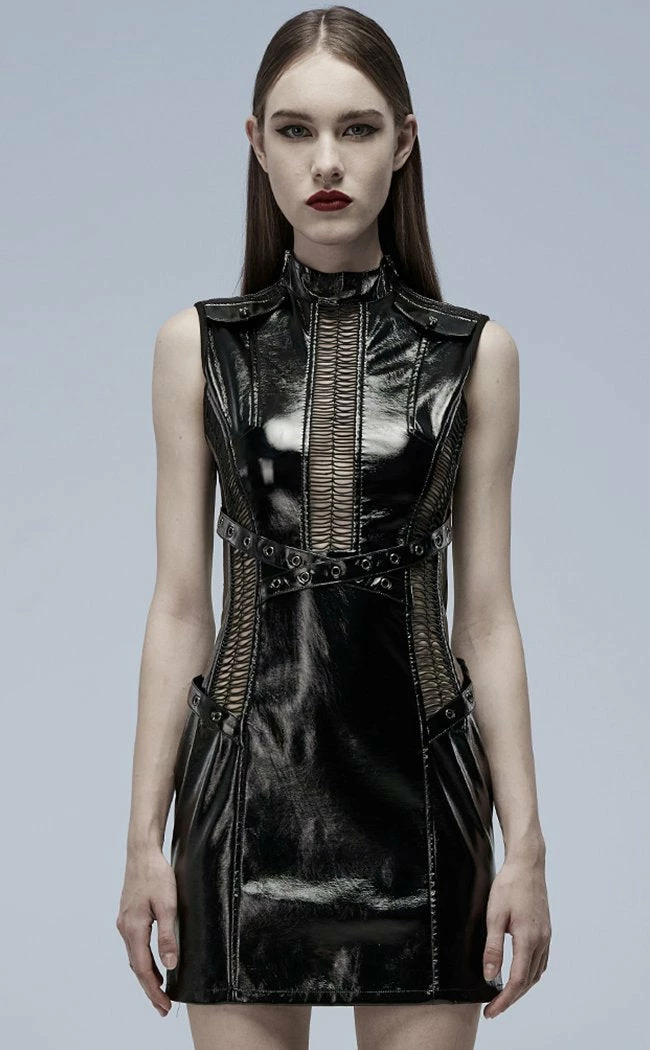 The Vertebrae Faux leather dress is the sexiest number you could ever lip into. The stretch PU leather forms a high waisted mini fit,Β shaping toΒ and moving with your figure. Openwork panels at the back, chest and sides create flattering lines with a unique bone-look effect, enhanced by extra deets like eyelet waist and hip straps.