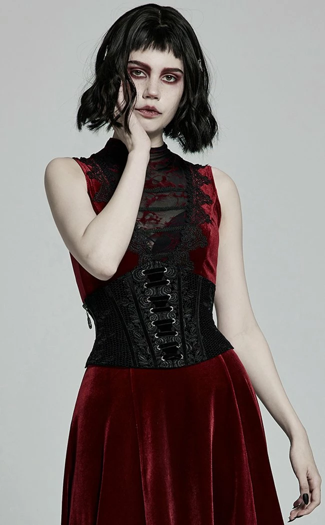 Live your blood countess fantasy in the Drusilla Corset!Β A layer of rose lace sits delicately over luxury velvet, hugging tight to the bodyΒ The rear features adjustable laces to match the front lacing panel but is equipped with a side zip for easy on/off.