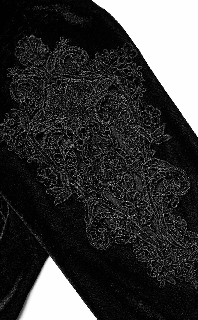 Worship your bod in the Livia Dress! This gorgeous frock is made of soft stretch velvet that forms long sleeves, a plunging V neck and a dramatic split in the midi-length skirt. A built-in belt lets you cinch your waist and the final touch of elaborate appliques on the shoulders takes this number from dramatic to exquisite.