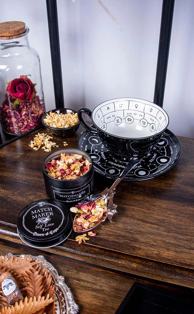 Queen Of Cups tea blends are hand-blended on-site in Australia to aid in rituals, spellcraft and relaxation. Brew to aid your intentions, offer on your altar or add to your bath during cleansing rituals.