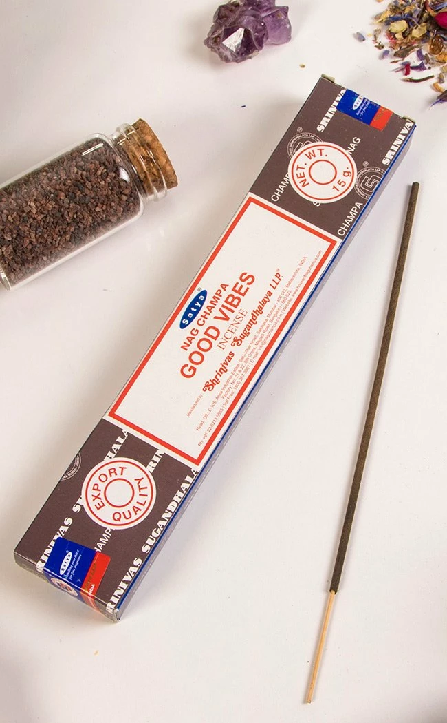 Satya’s Good Vibes incense is a hand rolled mood brightening scent made from traditional Indian masala spices, resins and florals.Β Use in rituals to cleanse your body and space of negative energy, inviting new beginnings.