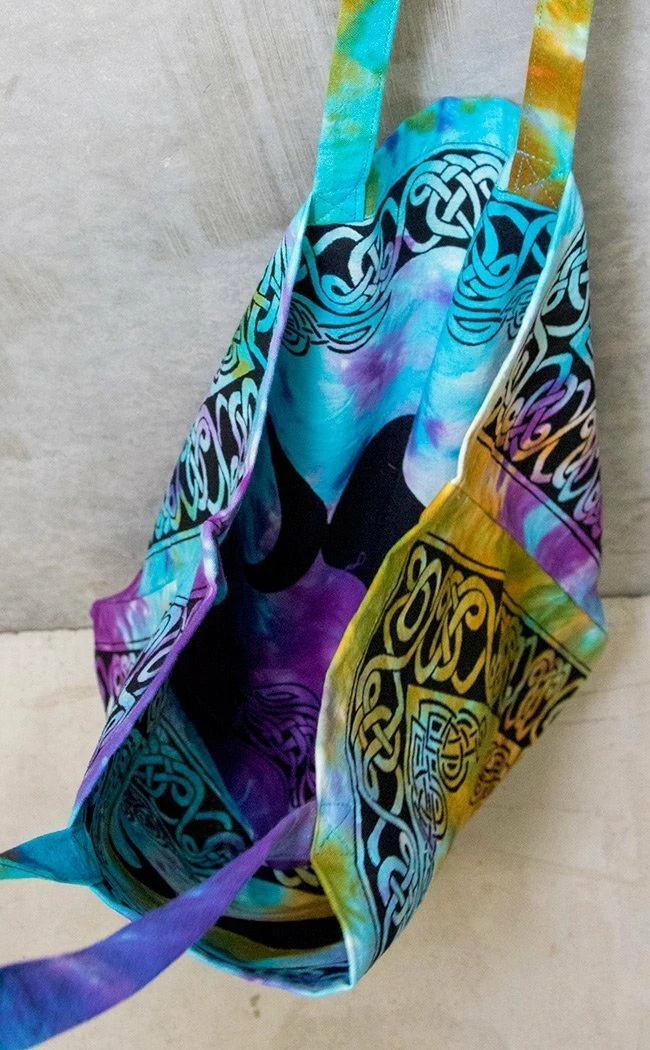 NOTE: This bag is Tie Dyed and handmade and each bag is a little different from the photo, some with orange, purple, blue colouring.