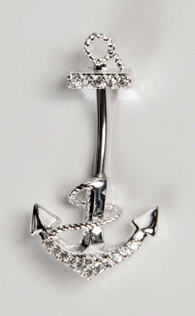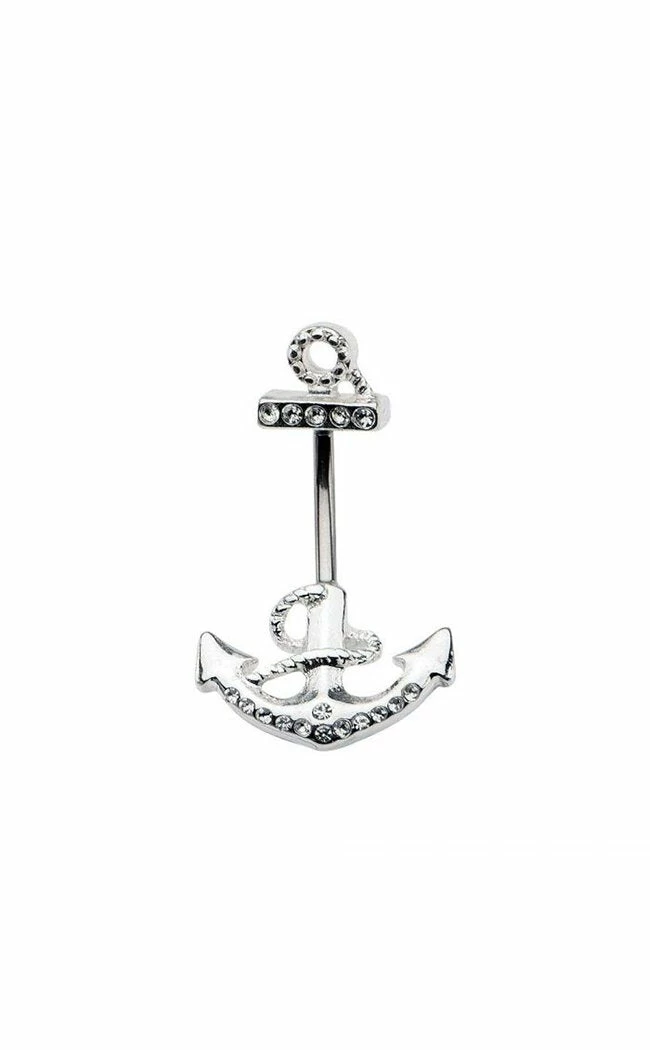 Set sail, baby!Β This adorable navel ring is shaped after an anchor, embedded with glittering clear crystals.