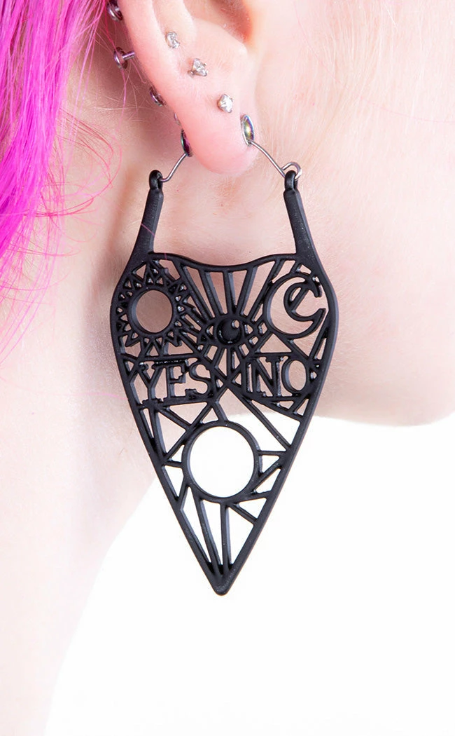 These gorgeous planchettes are an openwork design, stating “yes” and “no” and cast in light black silicone.聽 The hools are surgical steel so super safe for your ears.