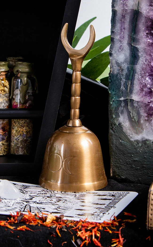 A Ritual bell is used in opening and closing your ceremony or ritual clearing energies and bringing focus. Use your bell to clear energy before, during and after a spell or ritual. Also your bell can be used in rituals for magic and healing as you call upon Gods, Goddesses, deities, as well as elemental powers and energies.