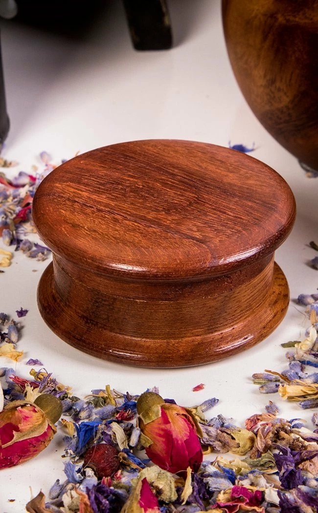This little wooden grinder is perfect for your home or travel altar, and is perfect for grinding your herbs, leaves or dried flowers for your spells and/or rituals. It is not recommended that you use the grinder for stems or resins.