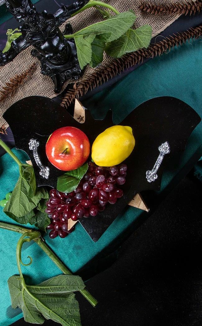 Unleash a vampiric feast upon your guests with the Nocturnal Serving Tray! Made with hardy mango wood, these trays are finished in sleek black and shaped after a screeching bat caught mid-flight. With two antique look handles, these versatile statement pieces are perfect for serving charcuterie, drinks and snacks at your next dinner party or creating a uniquely dark centrepiece for your dining table.