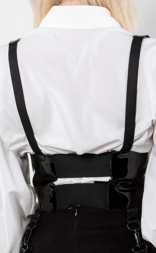 The Locked & Loaded Harness will have you feeling badass in a snap, featuring adjustable shoulder straps and a wide waistband connected by two buckled straps.